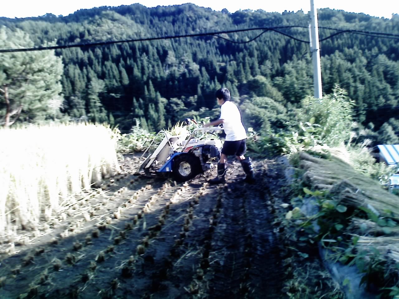 最初のうちは、刈ってしばった稲を運ばせていたが、