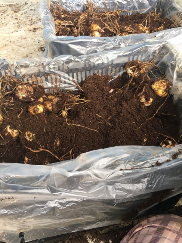 球根を植えた畝の上にまくため、