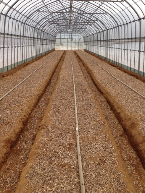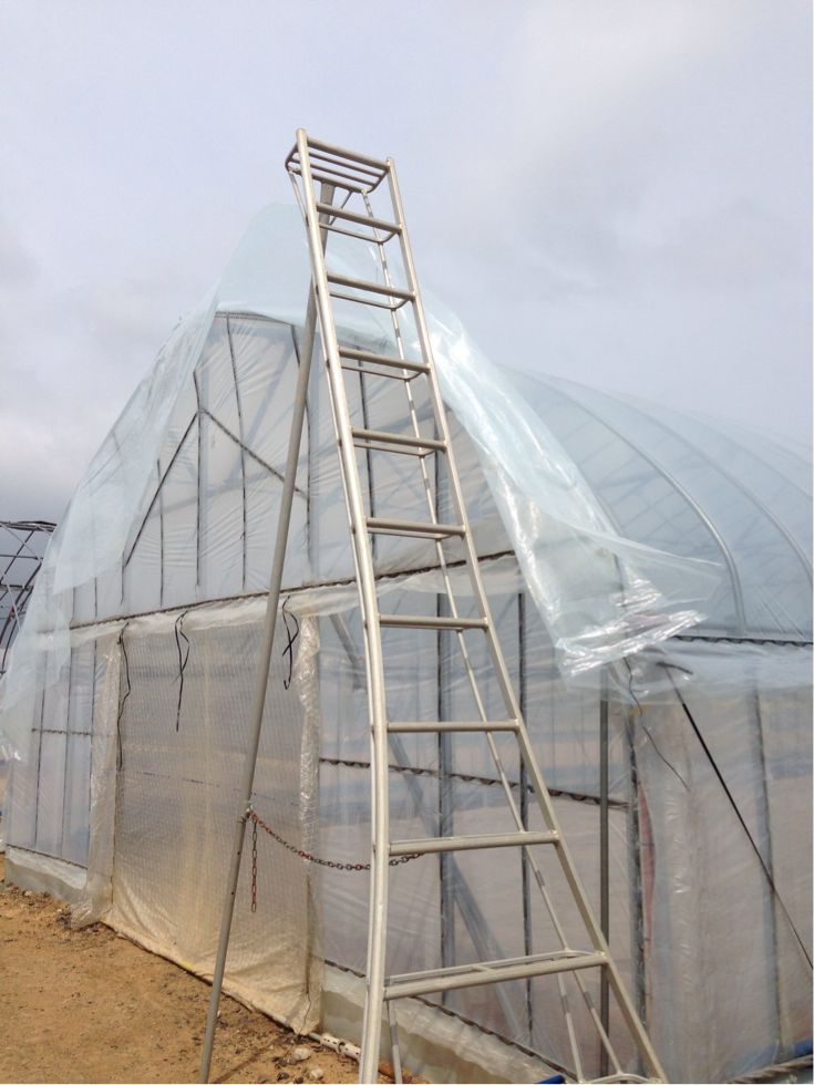 風のない日を狙ってハウスのビニールをはりたいのに、
