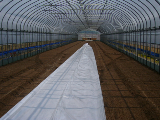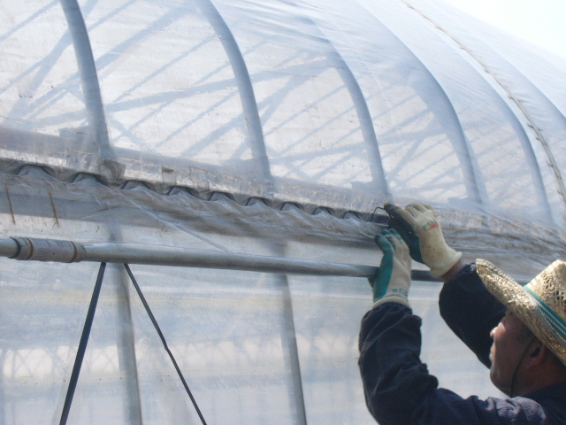 ハウスの反対側から、ひっぱる。