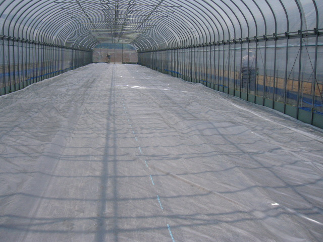 ハウスの両サイドから、しわにならないように