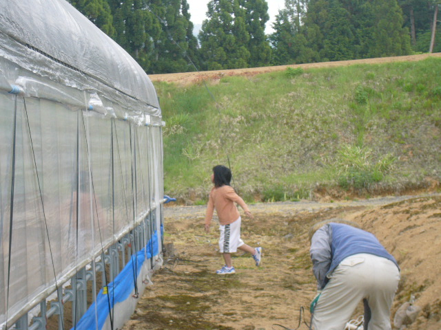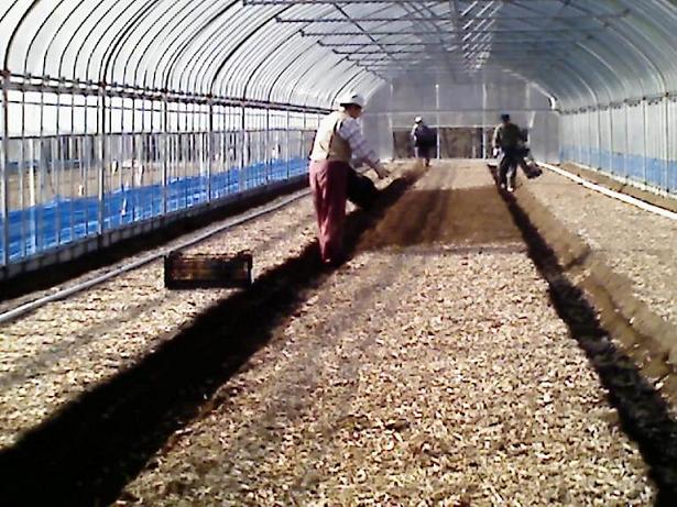 この日は、ハウスのビニールの上に、日光をさえぎらせるための