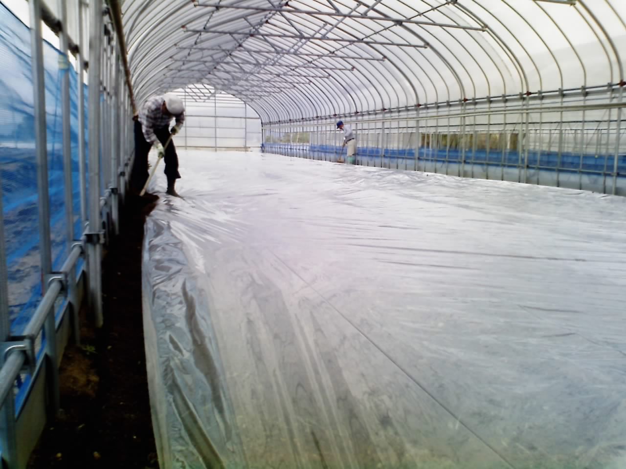 2つのハウスに、土壌消毒をしたり、