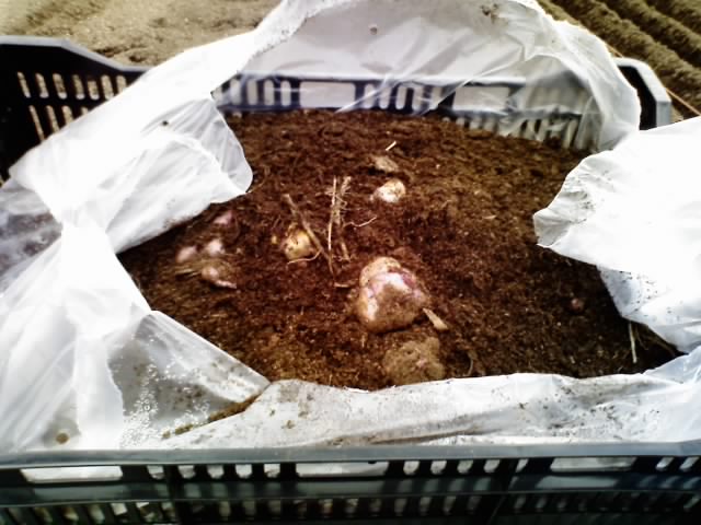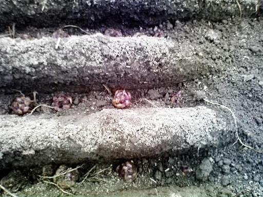 整えた畝の上に、藁か、カヤを細かくしたものを