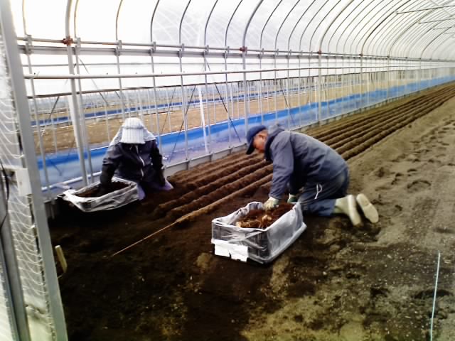 1ハウス植えるのに、4人がかりでほぼ1日がかり。