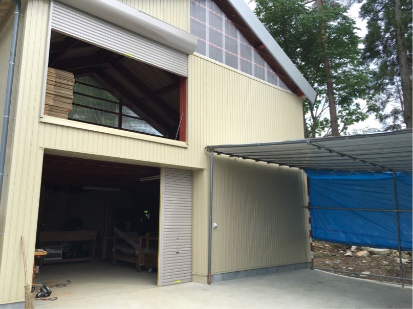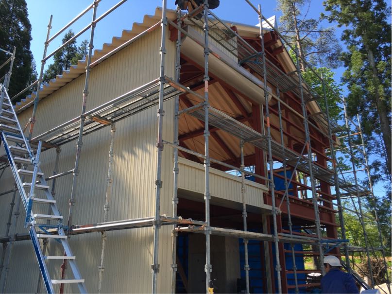 旦那が、カラスにつつかれて穴が開いている所にテープをはりながら、
