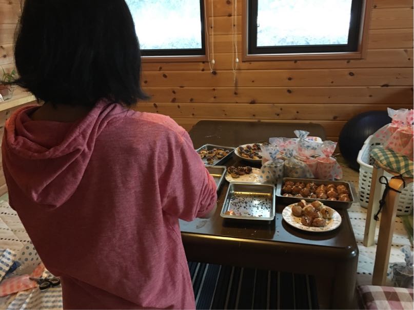 たこ焼き器で、ホットケーキミックスを使った生地を焼き、