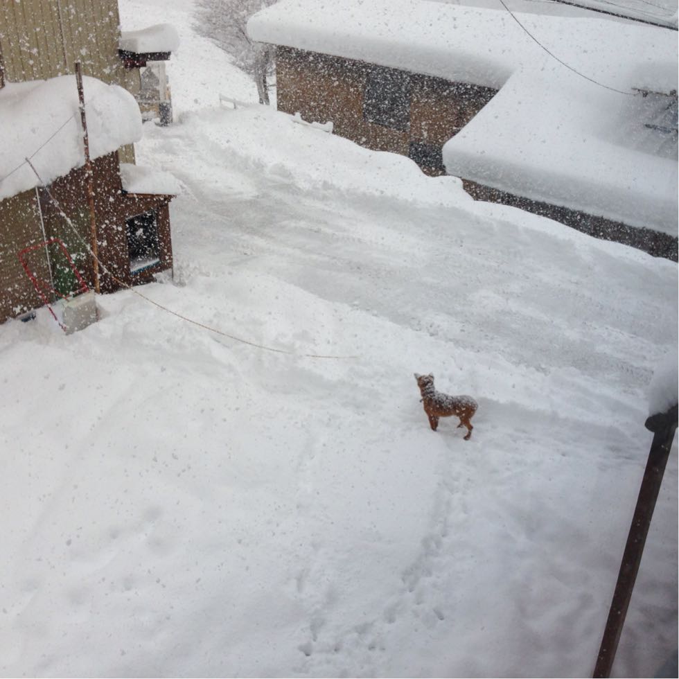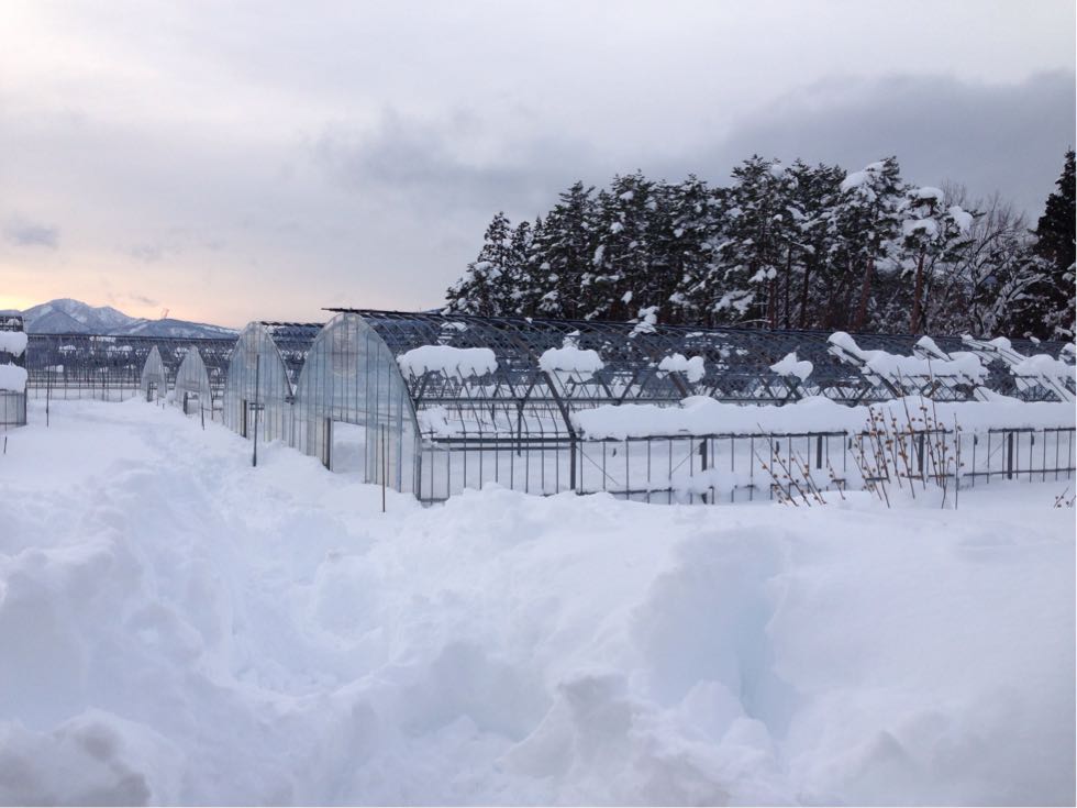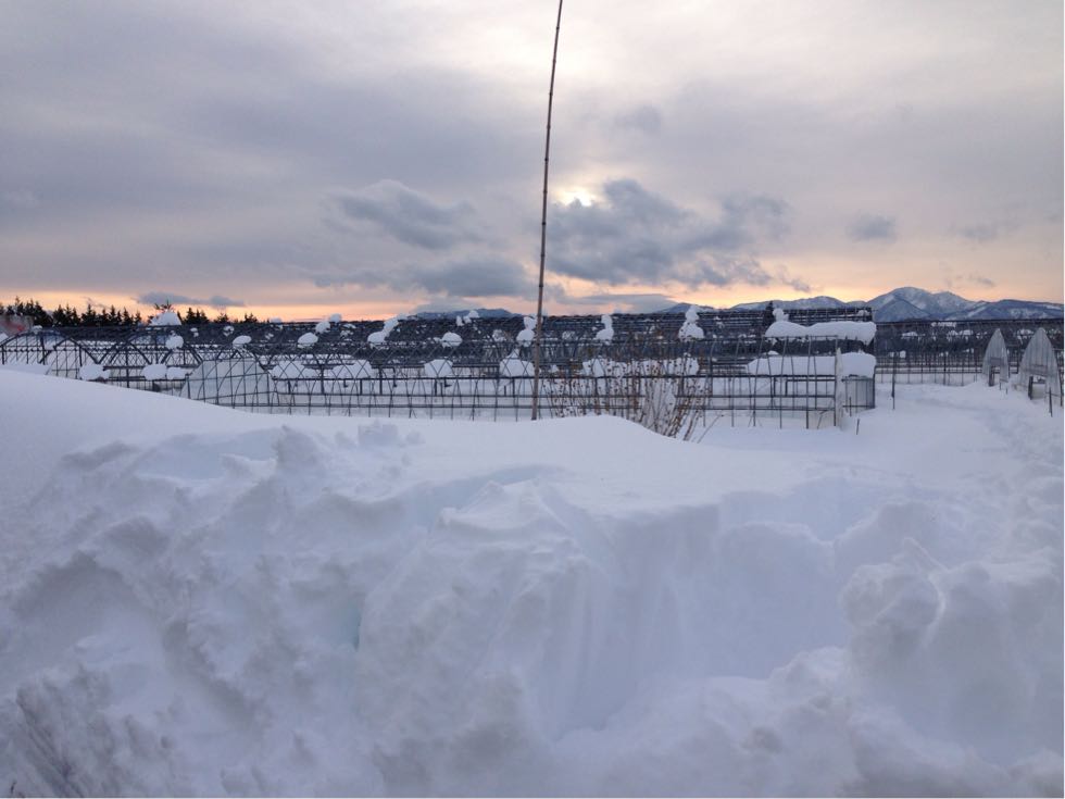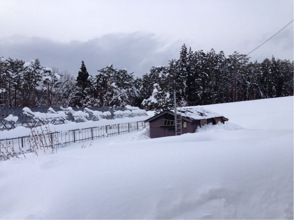 旦那は早速、ハウスがどのくらい雪に埋もれてるかチェックしに行き、